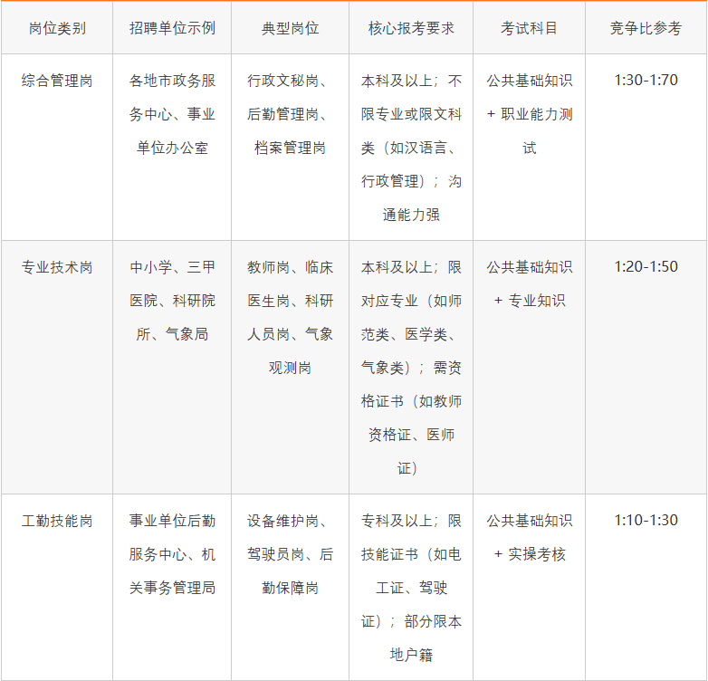 按职业规划选类型:想走行政路线、追求层级晋升,优先公务员,想深耕专业领域,选事业单位专业技术岗;想快速上岸、竞争小,选专项招录