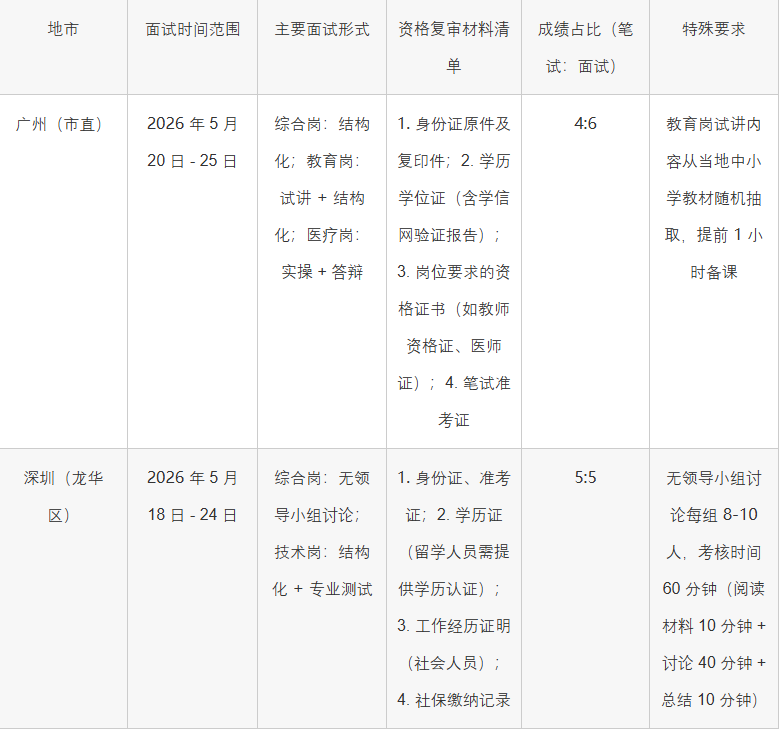 2026年广东事业单位面试周期短、节奏快,考生需紧盯公告时间节点,提前做好材料准备与备考规划,避免因信息遗漏错失机会。