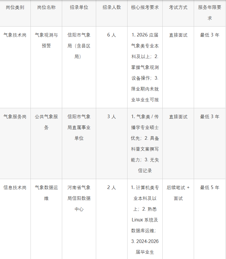 学历门槛:公务员基层岗专科起报,事业单位专业技术岗多要求本科及以上,气象岗明确接受择业期内未就业毕业生