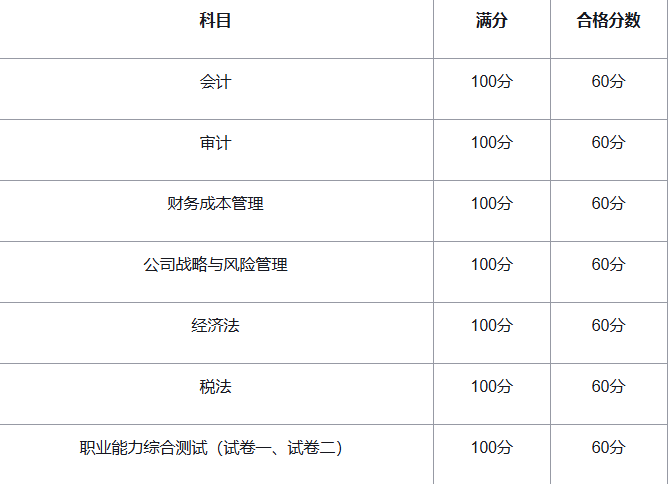 根据注册会计师考试的相关规定,考试成绩的合格标准为60分。具体科目及合格标准如下表所示: